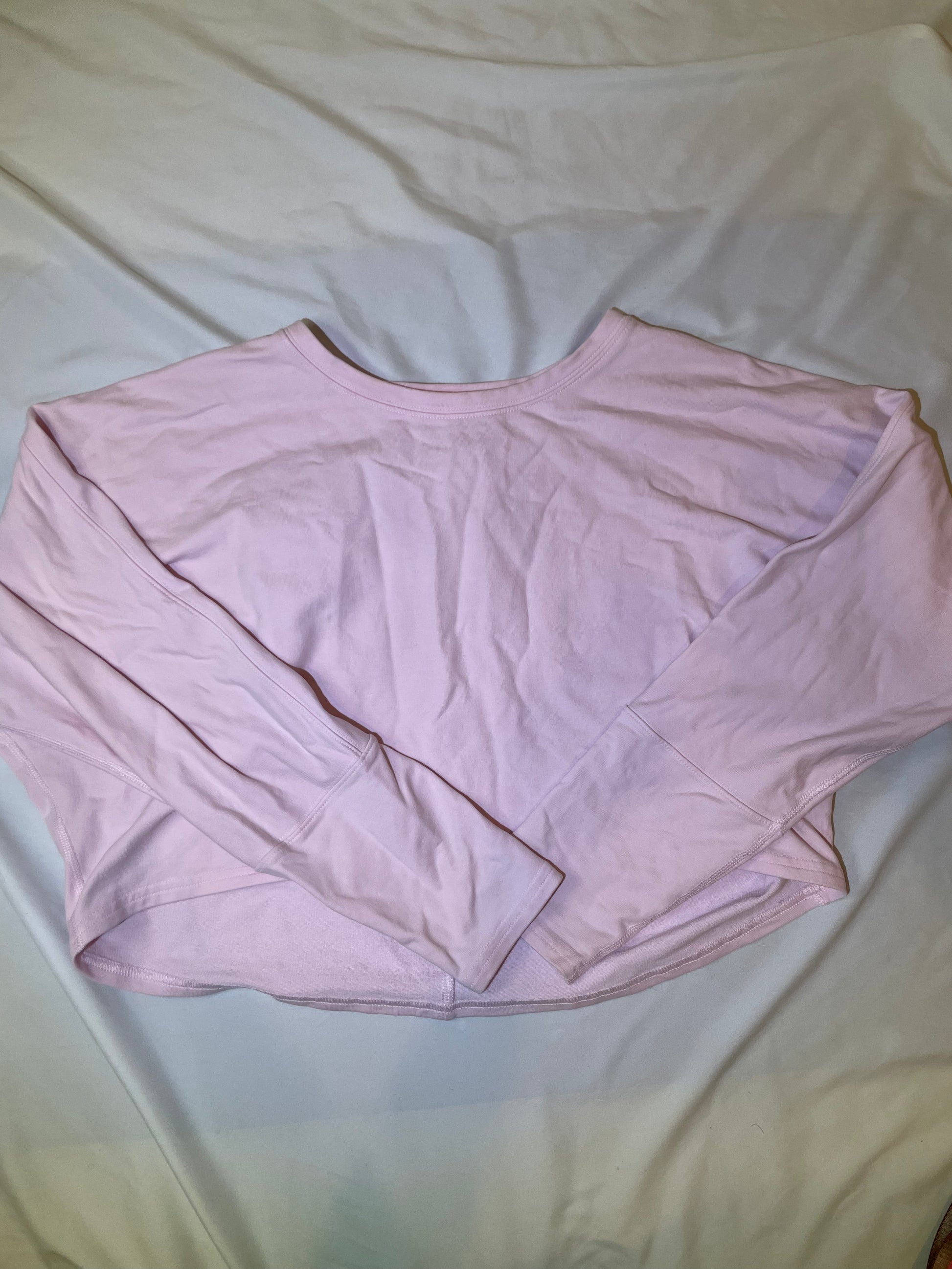Lululemon pink sweatshirt, perfect condition, no flaws. There is no way to confirm size or color, but it looks like a small or medium.